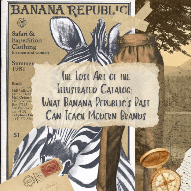 That’s what the old Banana Republic catalogs did. They paired safari shorts with old train tickets, silly doodles, and stories about far-off journeys. It wasn’t for everyone yet that’s exactly why it worked. Those catalogs didn’t read like ads; they read like magazines, or someone’s personal travel log. The products were there, but the story came first.